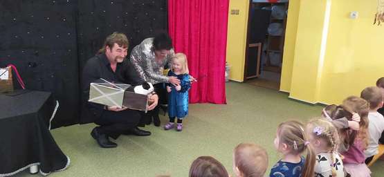 Dne 15.12.2023 přijel do naší školky kouzelník a dětem předvedl své umění. Vybral si i svoje pomocníky a společně kouzlili.