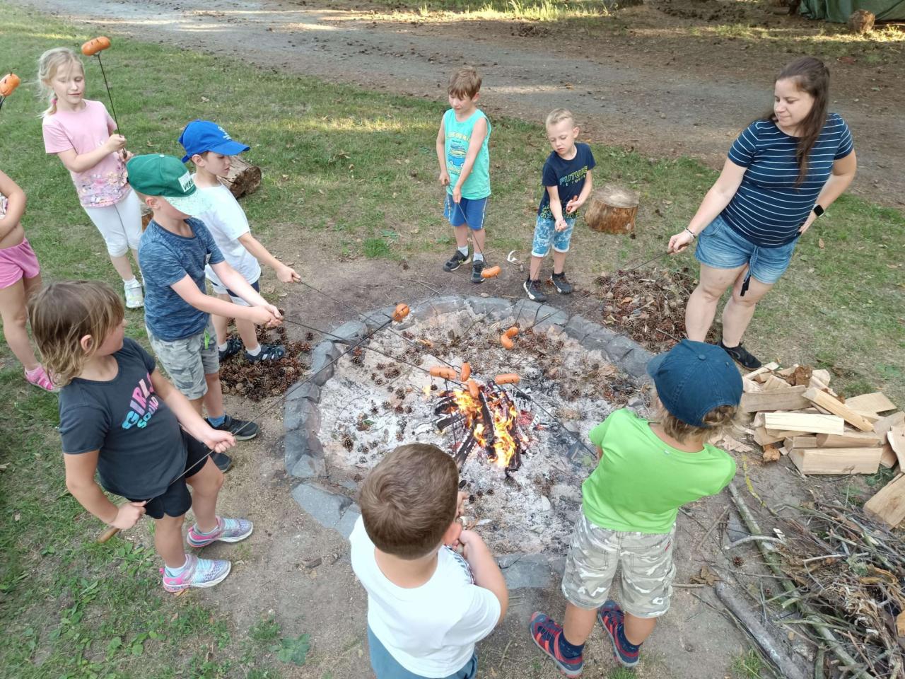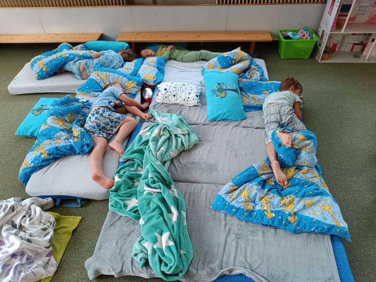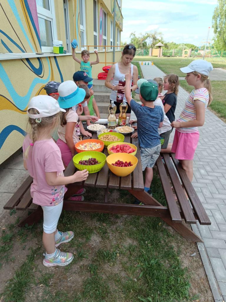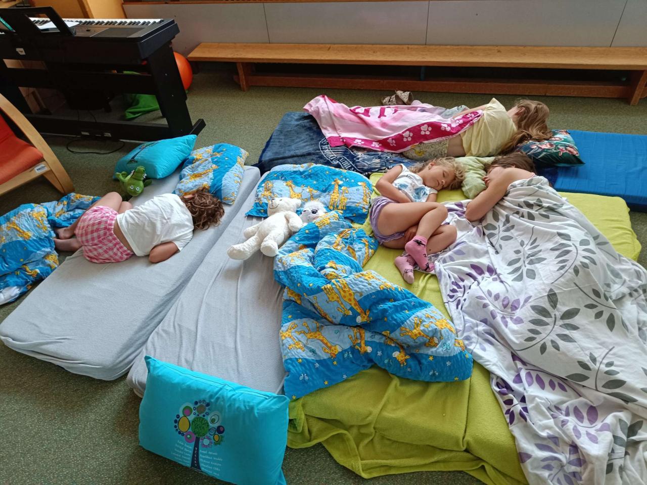 Dne 25.6. proběhla ve školce akce s názvem ,,poslední spaní". Děti si odpoledne přinesly plyšáky, kartáček na zuby, pyžamo a nějakou dobrotu na snídani. Paní učitelky připravily soutěže, pak se šlo na zmrzlinu, opékaly se špekáčky a po osprchování byla pohádka na dobrou noc.